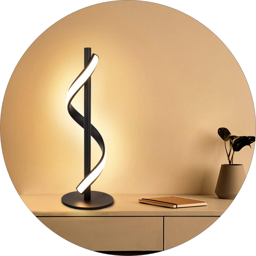 • نور یکنواخت و ملایم: به احتمال زیاد از نوارهای LED (چراغ‌های خطی) استفاده شده است که نور را به صورت یکنواخت و بدون سایه شدید در طول فرم مارپیچ پخش می‌کند. این نوع نور برای ایجاد یک اتمسفر آرام و دلپذیر (Ambient Lighting) عالی است.