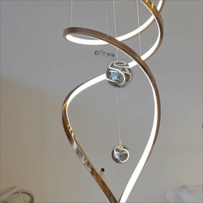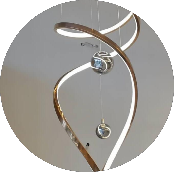 • حتی می‌توان با تنظیم نابرابر آویزها، فرم هنری و پویایی در چیدمان نور ایجاد کرد.