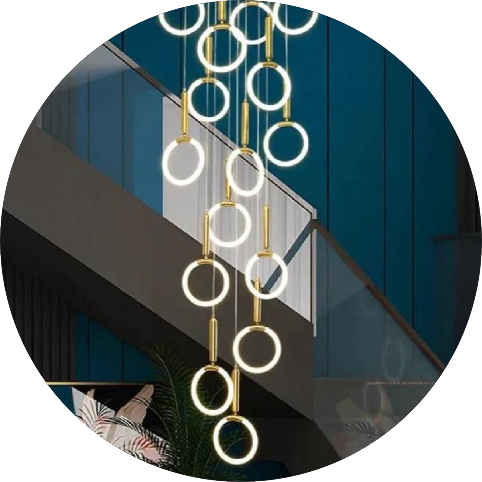 • حتی می‌توان با تنظیم نابرابر آویزها، فرم هنری و پویایی در چیدمان نور ایجاد کرد.