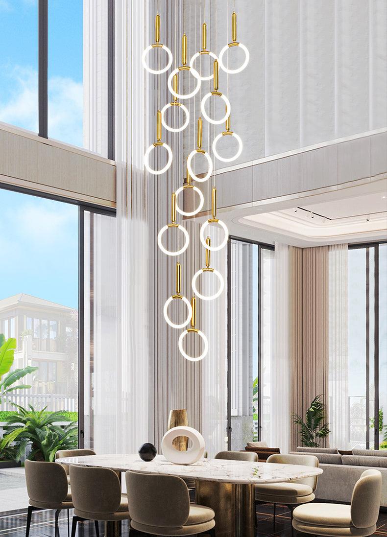 یکی از ویژگی‌های مهم این محصول، قابلیت انتخاب تعداد حلقه‌ها و تغییر اندازه کفی است که امکان اجرای طرح‌های متفاوت و کاملاً شخصی‌سازی‌شده را فراهم می‌کند. همچنین ارتفاع لوستر از ۱ متر تا ۳۰ متر قابل تنظیم است، بنابراین برای سقف‌های کوتاه و بلند کاملاً مناسب و انعطاف‌پذیر می‌باشد.