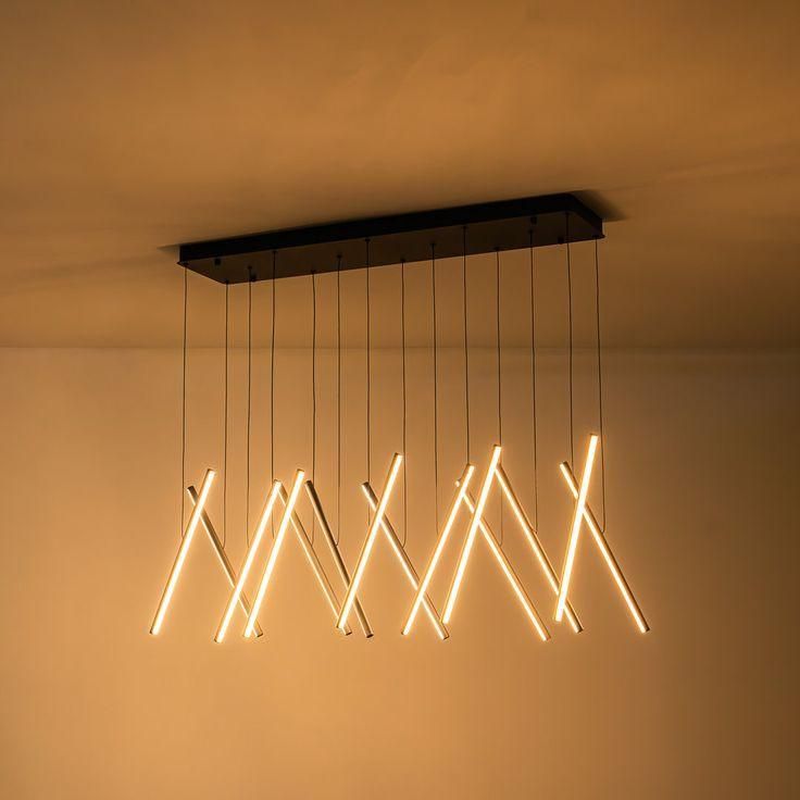 💡لوستر اویز سقفی مدرن میلهای ۱۴ شاخه – طراحی هندسی و نورپردازی حرفهای💡