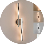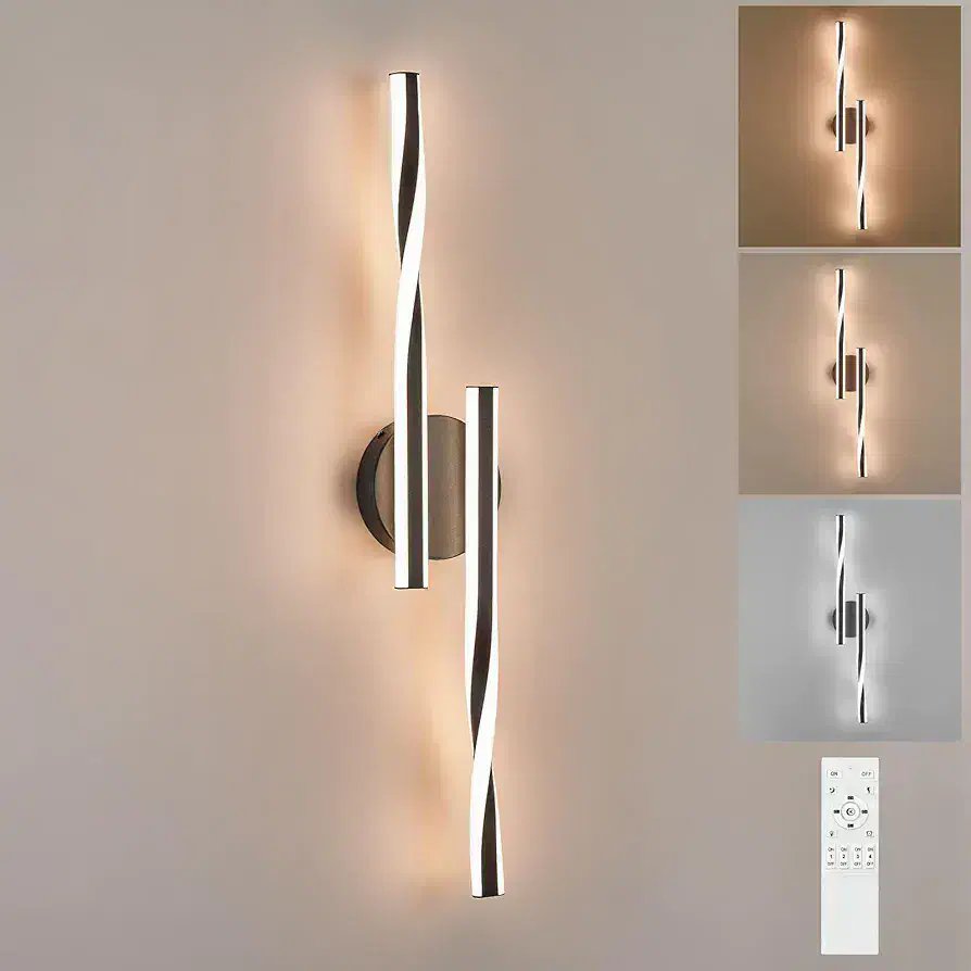 این لوستر دیواری مدرن با طراحی خاص دو نوار عمودی پیچخورده و پایهی دایرهای، جلوهای شیک و متفاوت به فضا میبخشد. نورپردازی سهحالته (نور گرم، طبیعی و سرد) همراه با کنترل از راه دور، امکان تنظیم نور متناسب با حالوهوای محیط را فراهم میکند.
