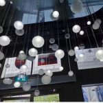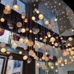 • حتی می‌توان با تنظیم نابرابر آویزها، فرم هنری و پویایی در چیدمان نور ایجاد کرد.