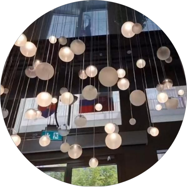 • حباب‌های متنوع: قابل تولید با انواع رنگ‌ها و سایزهای مختلف، متناسب با دکوراسیون محیط شما.