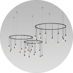 • حتی می‌توان با تنظیم نابرابر آویزها، فرم هنری و پویایی در چیدمان نور ایجاد کرد.