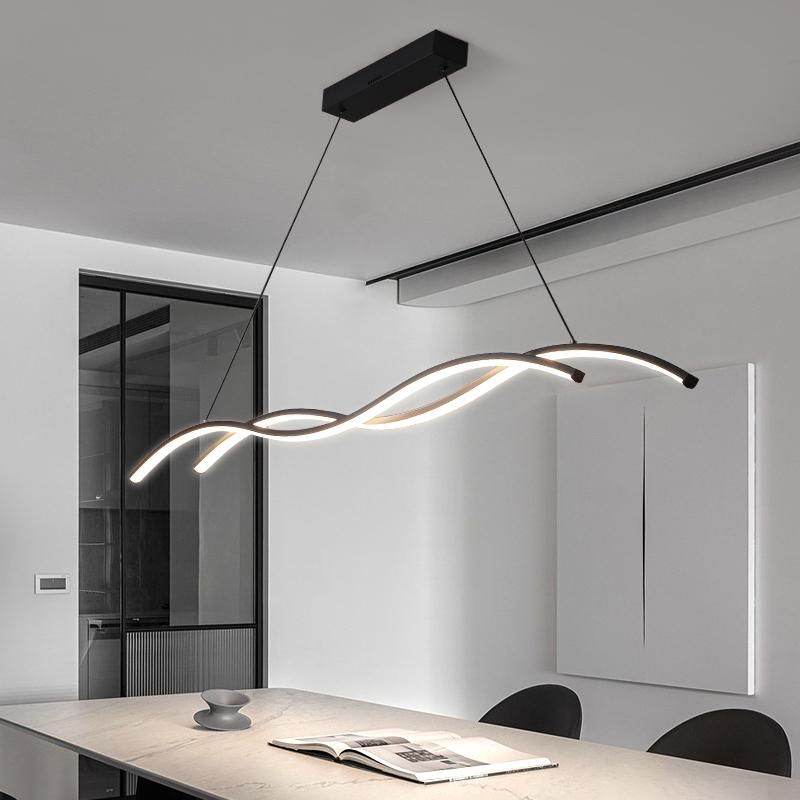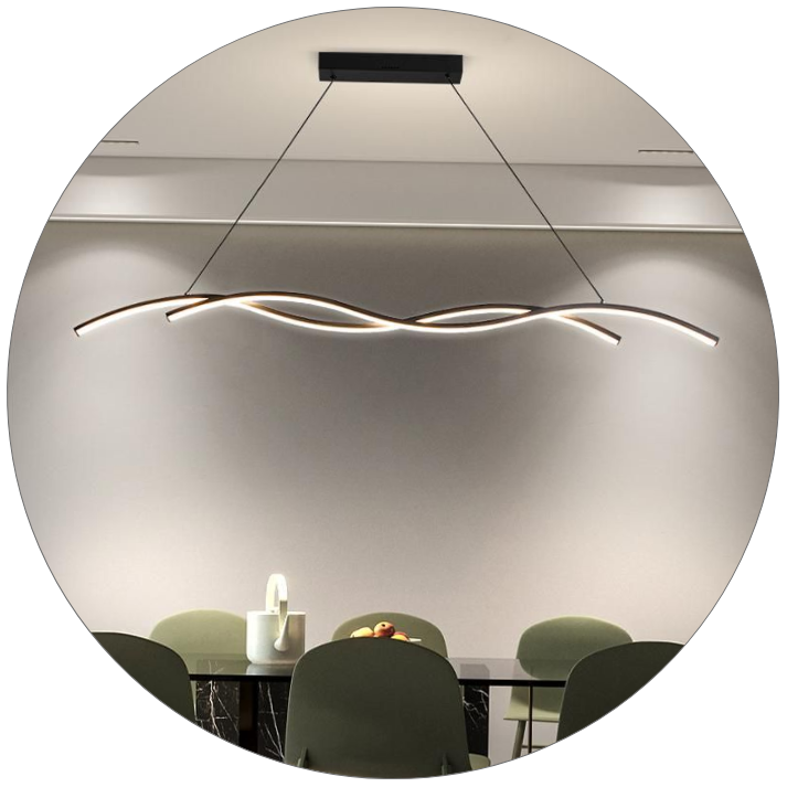 لوستر سقفی خطی طرح سینوسی سایز 130 سانتی با پروفیل های 2 در 1 سانتی میزان نوردهی 70 وات با دو لاین ریسه تراکم 120 گارانتی دو ساله تعویض مناسب برای انواع میز و کانتر بدنه آلومینیومی با پوشش رنگ کوره‌ای رنک نور آفتابی و مهتابی و یخی قابل سفارش در سایز های مختلف ارتفاع از سقف 100 سانتی متر و قابل تنظیم