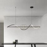 لوستر مدرن سقفی طراحی مدرن و زیبا مناسب برای انواع میز و کانتر بدنه آلومینیومی درجه یک پوشش بدنه رنگ کوره ای رنگ بدنه مشکی و طلایی سایز ۱۵۰ سانتی ارتفاع از سقف یک متر قابل تنظیم رنگ نور آفتابی و نچرال و یخی منبع نور قابل تنظیم