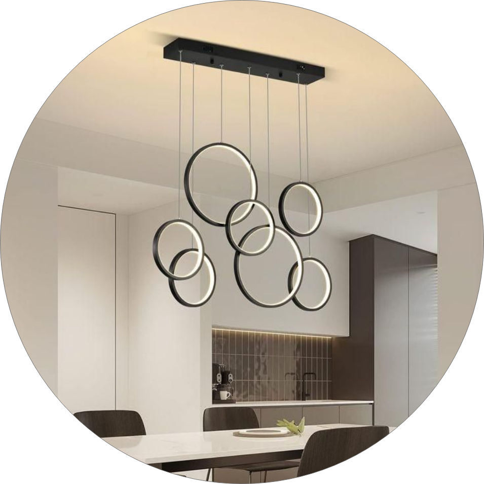 • آویزهای قابل تنظیم به شما اجازه می‌دهند ارتفاع هر چراغ را متناسب با ابعاد میز یا ارتفاع سقف تنظیم کنید.
