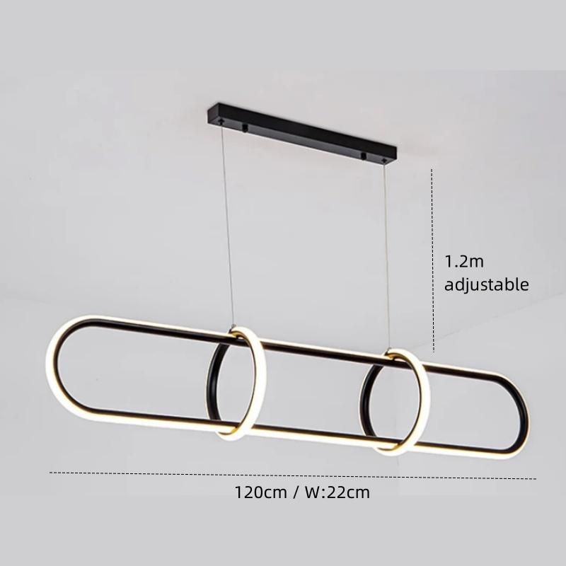 لوستر سقفی خطی مدرن مناسب انواع اتاق و پذیرایی سایز کار 120 سانتی متر است و حلقه های ۲۰ سانتی رنگ نور آفتابی و نچرال و یخی میتوانید سفارش دهید ریسه های قابل تعویض سه سال طول عمر مفید بدنه آلومینیومی ضخیم میزان نوردهی 60 وات رنگ بدنه مشکی و طلایی  رنک بدنه رنگ کوره ای درجه یک ریسه های اس ام دی تراکم ۱۸۰ درایور های قوی و مقاوم