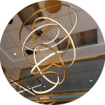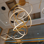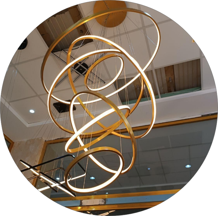 لوستر سقفی بلند طرح حلقه ای لاکچری رنگ نور آفتابی نچرال یخی میباشد سایز کار در ابعاد20،30،50،60،70سانتیمتر رنگ بدنه کوره ای درجه یک دارای درایورهای ضخیم و مقاوم دهنه کار سیلیکونهای نسوز میباشد. در سه حالت نور به داخل و بیرون یا ترکیبی رنگ بدنه مشکی طلایی بدنه آلومینیوم ضخیم