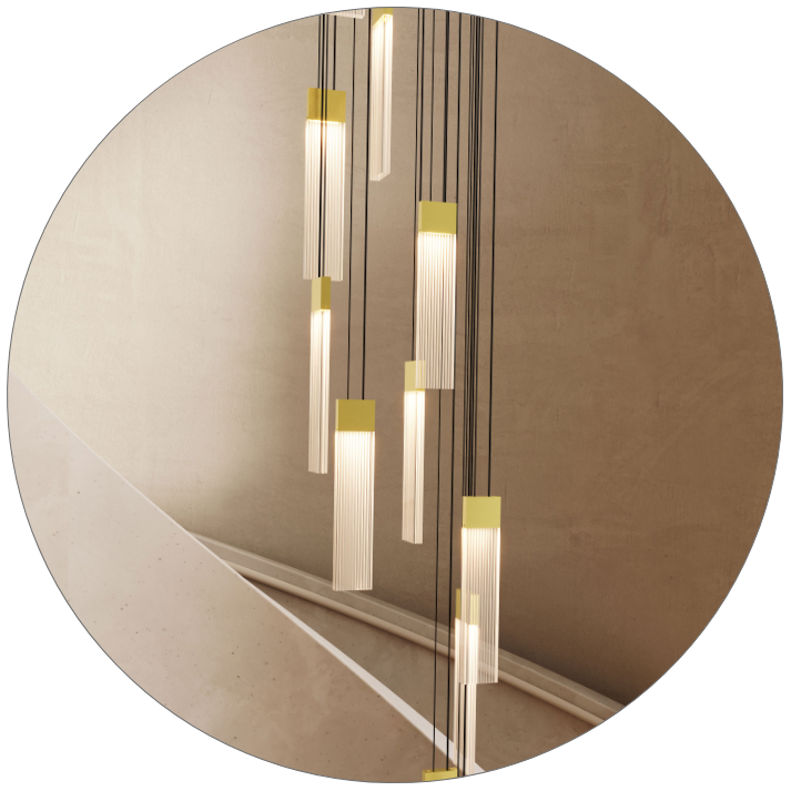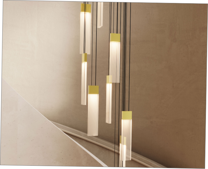 • حتی می‌توان با تنظیم نابرابر آویزها، فرم هنری و پویایی در چیدمان نور ایجاد کرد.