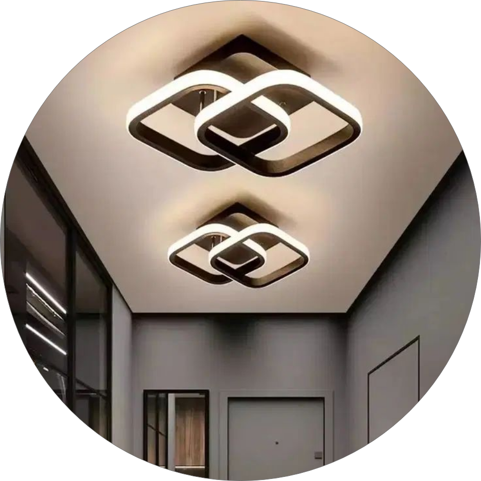 لوستر سقفی مدرن  طرح مربع تودلی چسبیده به سقف با طراحی چهارضلعی‌های درهم‌تنیده یا هندسی است؛ یکی از مدل‌های بسیار محبوب در دکوراسیون‌های مدرن و مینیمال امروزی.