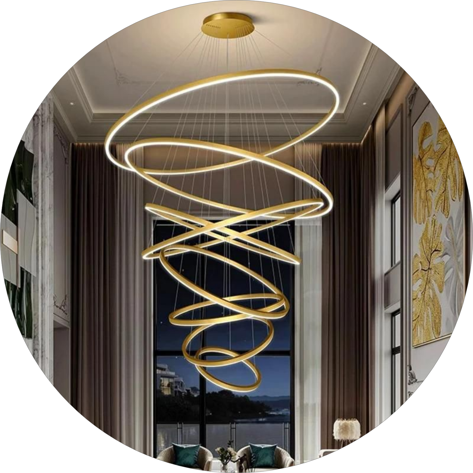 لوستر سقفی حلقهای گزینهای ایدهآل برای فضاهایی است که نیاز به نور کافی همراه با طراحی خاص دارند. ترکیب زیبای حلقههای هممرکز با نور ملایم، حس آرامش و جذابیت را در فضا ایجاد میکند.
