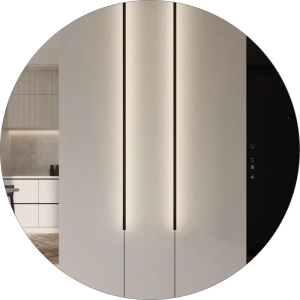 نور از نوارهای LED خطی به شکل یکسان و منظم در سراسر فضا پخش میشود، مناسب برای روشنایی عمومی (general lighting). -