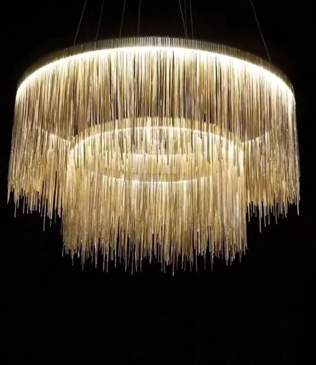 لوستر مدرن سقفی طرح زنجیرابعاد40/60سانتی میباشدجنس بدنه آلومینیوم ضخیم رنگ بدنه رنگ کوره ای درجه یک در رنگهای آفتابی نچرال و یخی دهنه کار با سیلیکون نسوز میباشد رنگ بدنه مشکی طلایی میباشد مناسب حال و پذیرایی قابل تنظیم از سقف میباشد.