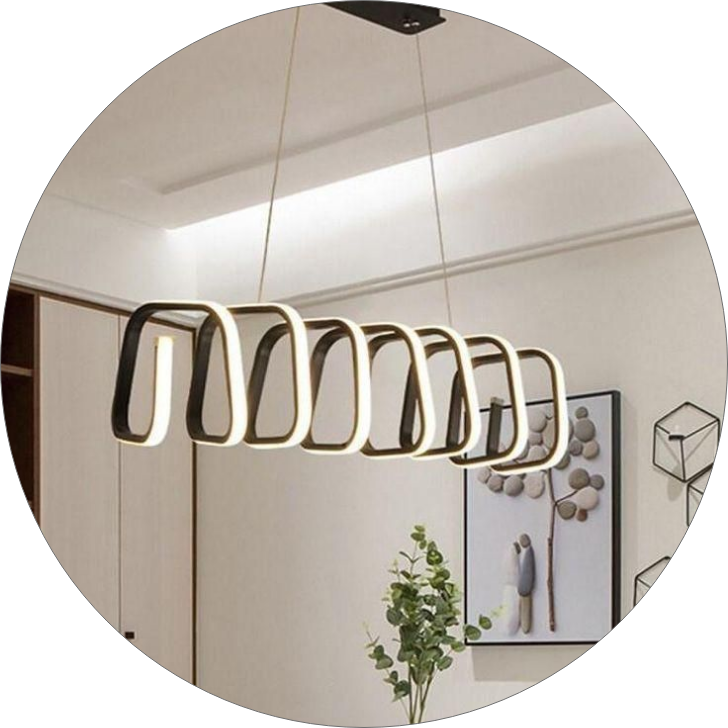 • حتی می‌توان با تنظیم نابرابر آویزها، فرم هنری و پویایی در چیدمان نور ایجاد کرد.