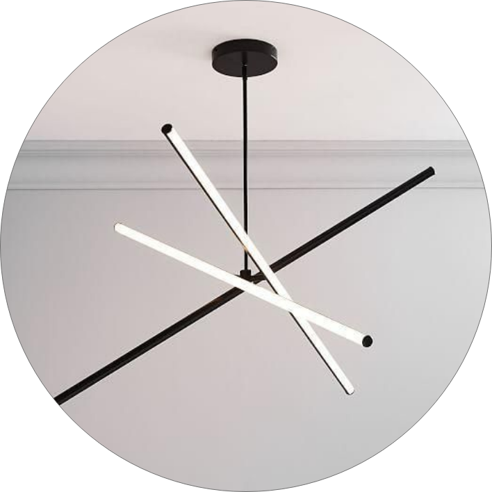 • حتی می‌توان با تنظیم نابرابر آویزها، فرم هنری و پویایی در چیدمان نور ایجاد کرد.