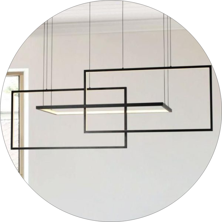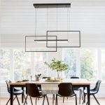 این لوستر با طراحی مستطیلی زنجیرشده، نمایی متفاوت و چشمنواز ایجاد میکند و نور ملایم و یکنواخت آن، حس گرما و آرامش را به فضا منتقل میسازد.