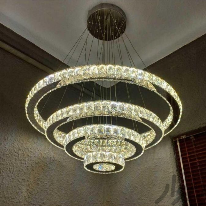 لوستر مدرن سقفی کریستالی زیبا و لاکچری رنگ نور سه رنگ میباشد سایز کار در ابعاد 20،40،60،80سانتیمتر کریستالهای سایز 3در 5 سانت درجه یک رنگ بدنه کوره ای درجه یک دارای درایورهای ضخیم و مقاوم دهنه کار سیلیکونهای نسوز میباشد. در سه حالت نور به داخل و بیرون یا ترکیبی رنگ بدنه نقره ای طلایی بدنه آلومینیوم ضخیم