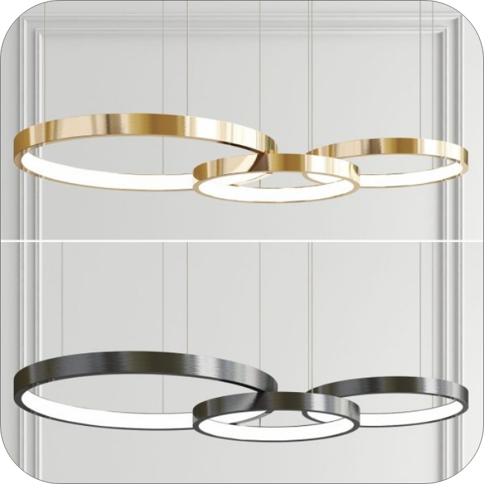 لوستر LED مدرن ، چراغ آویز خلاقانه طرحی جدید و فوق العاده خاص طرحی زیبا برای فضای شما عزیزان لوستر مدرن حلقه ای در سایز30*50*70 داخل هم رفته جنس بدنه الومنیوم رنگ بدنه کوره ای درجه یک رنگ بدنه مشکی سفید طلایی در سه رنگ نور افتابی نچرال یخی میزان نور دهی75 وات اس ام دی ارتفاع از سقف قابل تنظیم میباشد دهنه کار با سیلیکون درجه یک بسته میشود.