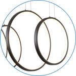 لوستر مدرن سقفی حلقه ایی طرح المپیک سه حلقه بسیار جذاب و زیبا جنس بدنه الومینیوم درجه یک رنگ بدنه سفید مشکی طلایی در سه رنگ نور افتابی نچرال  یخی و سه رنگ ارتفاع کار از سقف قابل تنظیم میباشد دهنه کار با سیلیکون نسوز بسته.