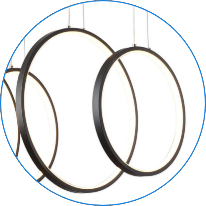 لوستر مدرن سقفی حلقه ایی طرح المپیک سه حلقه بسیار جذاب و زیبا جنس بدنه الومینیوم درجه یک رنگ بدنه سفید مشکی طوسی طلایی در چهار رنگ نور افتابی مهتابی یخی و سه رنگ ارتفاع کار از سقف قابل تنظیم میباشد دهنه کار با سیلیکون نسوز بسته.