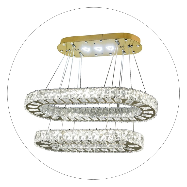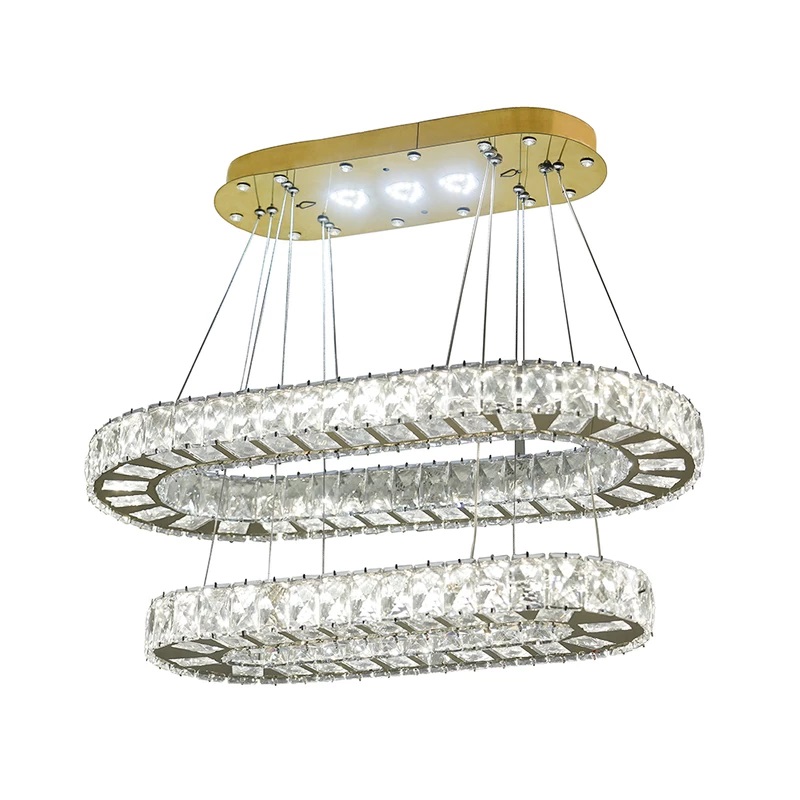 ✅ لوستر مدرن سقفی بیضی کریستالی دوطبقه – 20 و 40 سانتیمتر✅