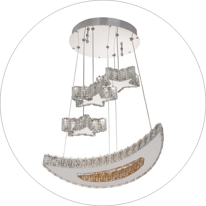 لوستر مدرن دکوراتیو کریستال طرح ماه و ستاره کد00324