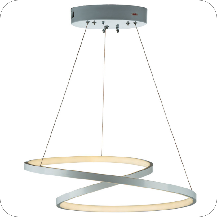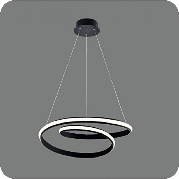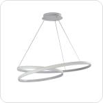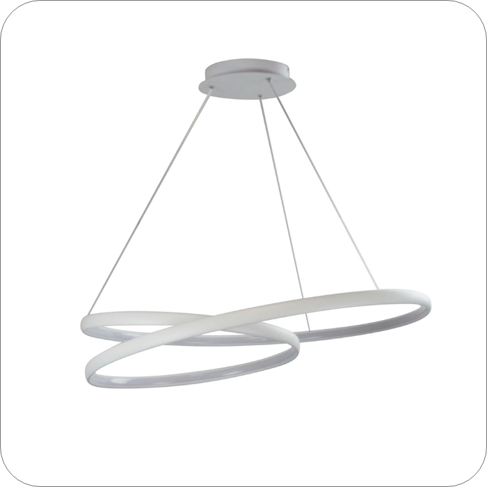 لوستر مدرن ،خلاقانه با سیم ارتفاع قابل تنظیم لوستر حلقه ای طرح تو دلی  60 واتی که از دو حلقه سایز های سی و پنجاه پنچ  سانتی تشکیل شده است و بسیار مناسب سالن پذیرایی اتاق غذاخوری اتاق خواب اتاق خواب میباشد ارتفاع از سقف انها قابل تنظیم میباشد دارای ریسه های اس ام دی میباشد.رنگ نور آفتابی مهتابی یخی سه رنگ
