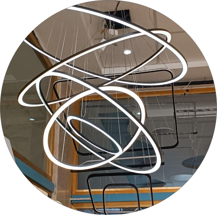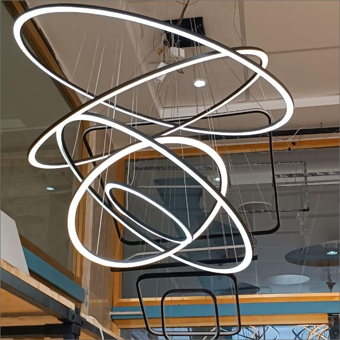 لوستر مدرن سقفی حلقه ای طرح رینگ طرحی جدید و خاص بسیار زیبا مناسب انواع پذیرایی حال محیط اداری بدنه آلومینیوم ضخیم رنگ بدنه مشکی طلایی کوره ای ضخیم شاهکار در طراحی سبک مدرن ارتفاع از سقف قابل تنظیم رنگ آفتابی مهتابی یخی ابعاد حلقه ها 20تا70 سانتیمتر میباشد.چینش حالت حلقه ها منعطف قابل تغییر است