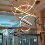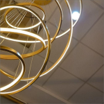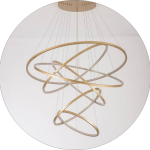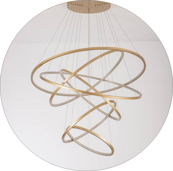 لوستر مدرن سقفی بلند طرح کهکشانی حلقه ای 8طبقه سایز 30و40و50و70سانتی جنس بدنه آلومینیوم ضخیم رنگ بدنه رنگ کوره ای درجه یک در رنگهای آفتابی نچرال یخی دهنه کار با سیلیکون نسوز میباشد رنگ بدنه مشکی طلایی میباشد مناسب اتاق خواب آشپزخانه حال محیط اداری قابل تنظیم تا 4متر از سقف میباشد.