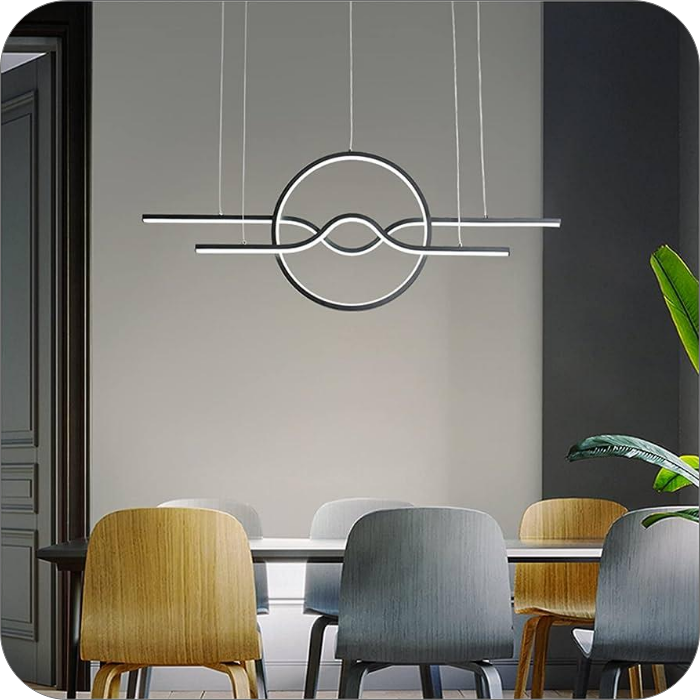 لوستر LED مدرن خطی ، چراغ آویز خلاقانه و فوق العاده خاص جنس بدنه آلومینیومی و رنگ بدنه رنگ کوره ای درجه یک در سایز ۱.4۰ سانتی متر حلقه سی سانت در رنگ های سفید و مشکی و طلایی میزان نور دهی ۵۰ وات اس ام دی رنگ نور میتوانید آفتابی و نچرال و یخی سفارش دهید ارتفاع از سقف قابل تنظیم دهنه کار با سیلیکون نسوز بسته میشود.