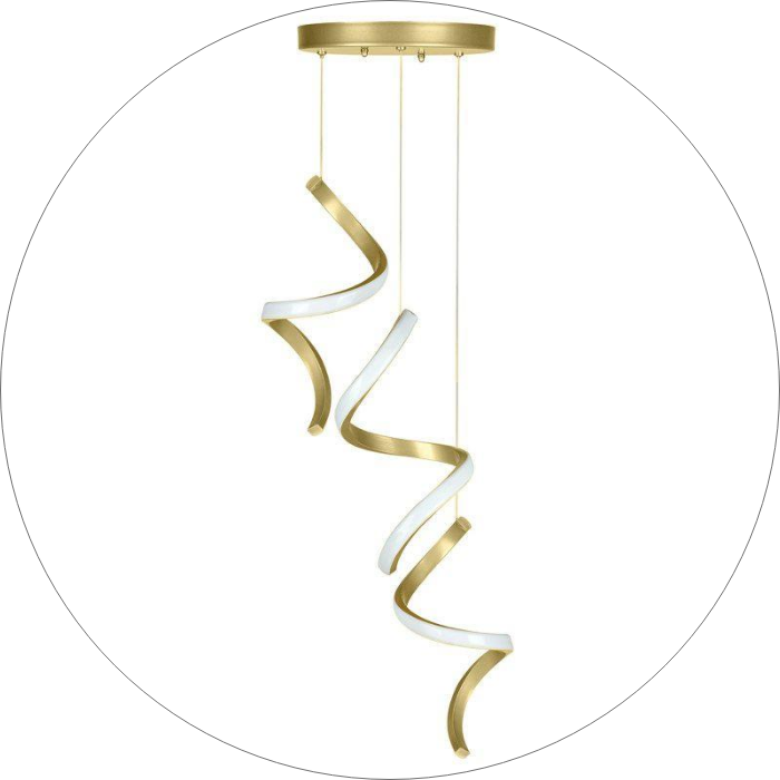 لوستر LED مدرن ، چراغ آویز خلاقانه طرحی جدید و فوق العاده خاص، جنس بدنه آلومینیومی و رنگ بدنه رنگ کوره ای درجه یک فنر های در قطر 15 سانت و ارتفاع 50سانت که سه عدد از آنها در یک کفی آویز شده اند در رنگ های سفید و مشکی و طلایی و موجود میباشد، میزان نور دهی ۶۰ وات اس ام دی است و رنگ نور میتوانید آفتابی ونچرال و یخی سفارش داده شودو نیز ارتفاع از سقف قابل تنظیم و دهنه کار با سیلیکون نسوز بسته میشود.