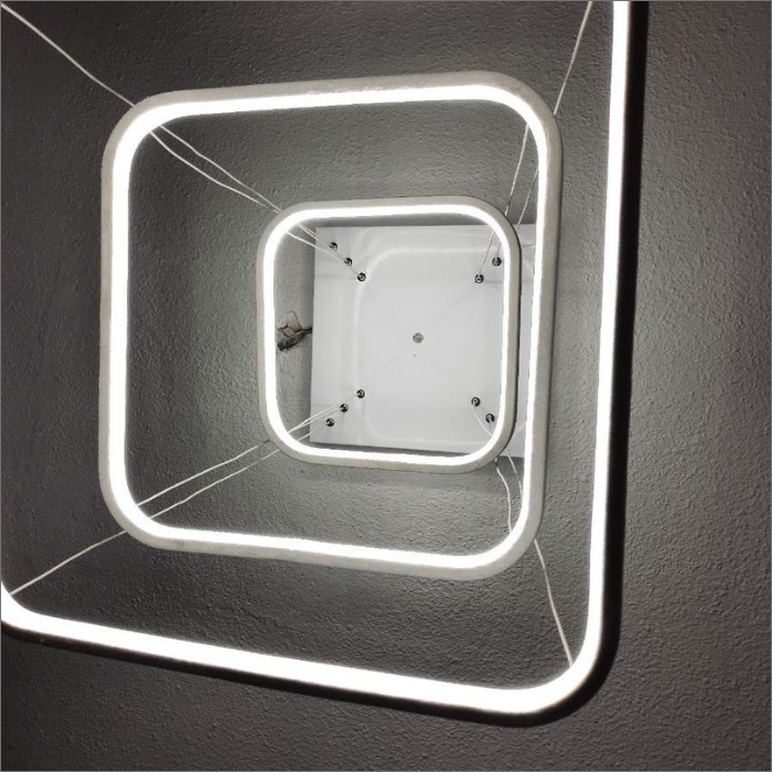 لوستر LED مدرن ، چراغ آویز خلاقانه با سیم ارتفاع قابل تنظیم یک متری،لوستر مدرن مربع ای سه طبقه سایز سی و پنجاه و هفتاد است رنگ های بدنه سفید مشکی طوسی طلایی رنگ نور های افتابی مهتابی یخی و سه رنگ ریسه های تایوانی و ترانس های درجه یک.