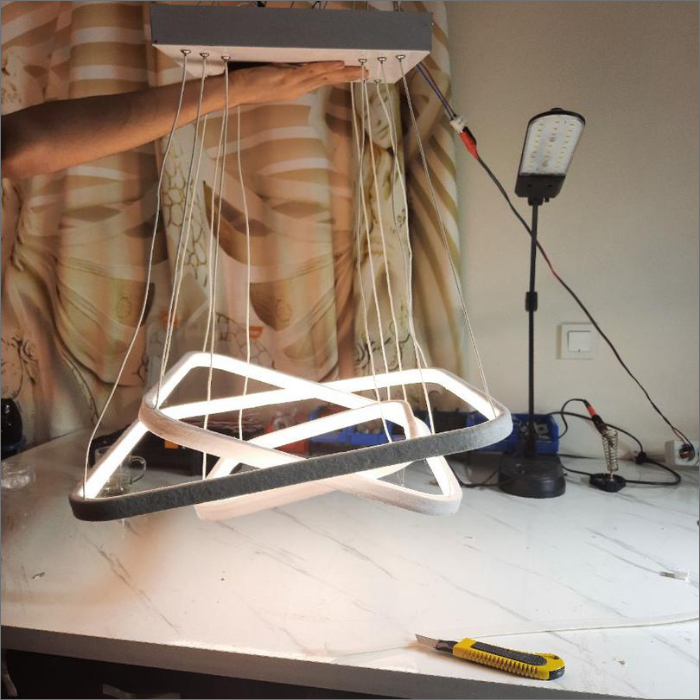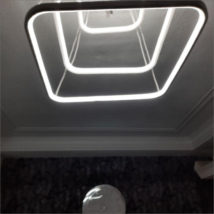 لوستر LED مدرن ، چراغ آویز خلاقانه با سیم ارتفاع قابل تنظیم یک متری،لوستر مدرن مربع ای سه طبقه سایز سی و پنجاه و هفتاد است رنگ های بدنه سفید مشکی طلایی رنگ نور های افتابی نچرال یخی و سه رنگ ریسه های تایوانی و ترانس های درجه یک.