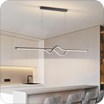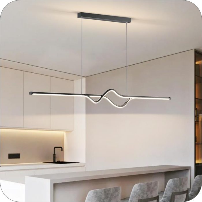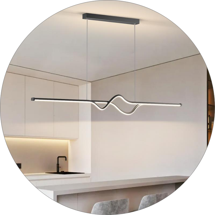 لوستر LED مدرن ، چراغ آویز خلاقانه جنس بدنه آلومینیومی و رنگ بدنه رنگ کوره ای درجه یک در سایز ۱.۲۰ سانتی متر  در رنگ های سفید و مشکی و طلایی میزان نور دهی ۵۰ وات اس ام دی رنگ نور میتوانید آفتابی و نچرال  و یخی سفارش دهید ارتفاع از سقف قابل تنظیم دهنه کار با سیلیکون نسوز بسته میشود.
