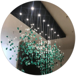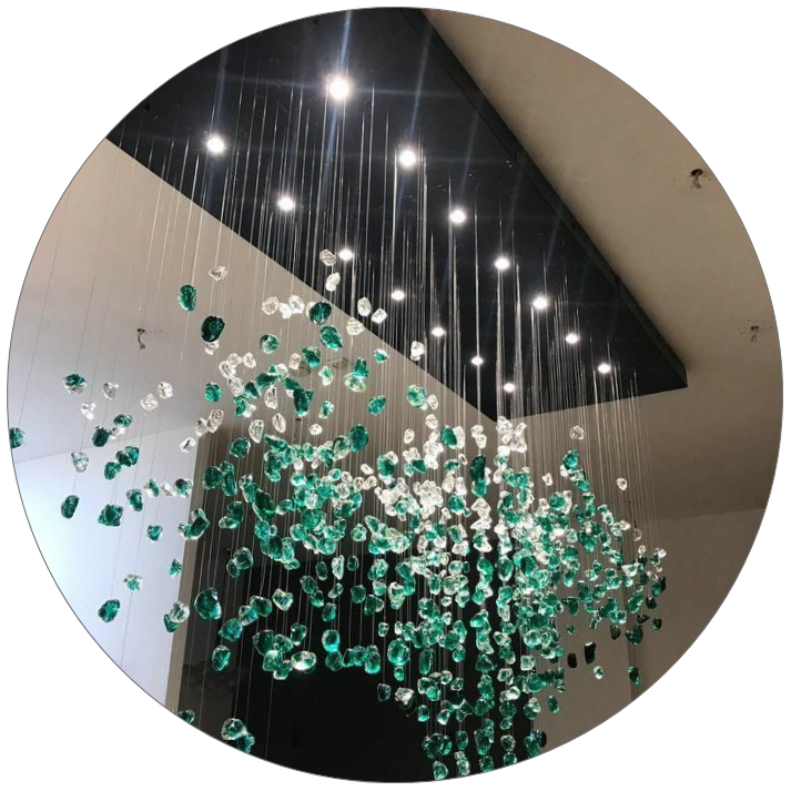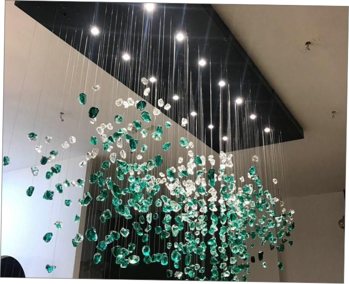• حتی می‌توان با تنظیم نابرابر آویزها، فرم هنری و پویایی در چیدمان نور ایجاد کرد.