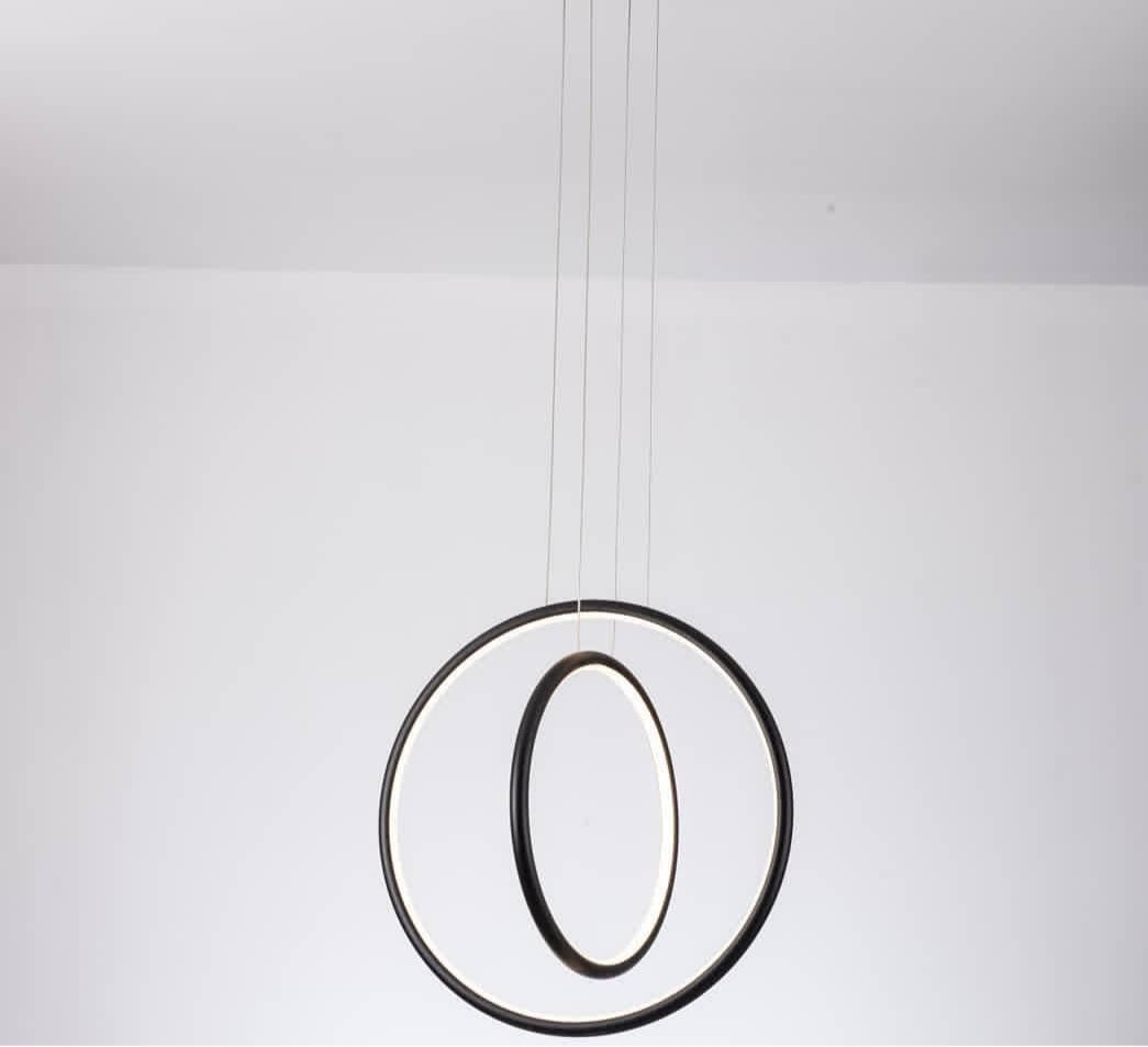 این لوستر سقفی با طراحی دو حلقهی آویزان تو در تو (دایره و بیضی) یکی از مدلهای پرطرفدار مدرن است. ساختار هندسی ساده و نور ملایم آن باعث شده برای فضاهای مینیمال و امروزی، مانند پذیرایی، اتاق ناهارخوری، لابی یا اتاق کار مدرن انتخابی عالی باشد.