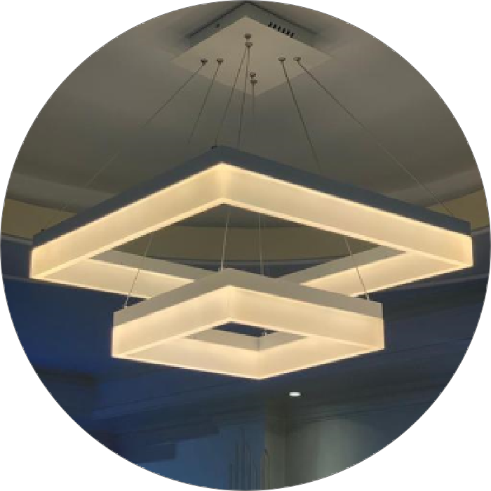 لوسترمدرن سبک پلکسی بسیار زیبا و جذاب جنس بدنه الومینیومی رنگ بدنه کوره ایی درجه یک در چهار رنگ سفید مشکی طوسی طلایی و در چهار رنگ نور افتابی نچرال یخی و سه رنگ ارتفاع کار از سقف قابل تنظیم میباشد ریسه های اس ام دی باکیفیت و پرقدرت همراه درایور های خارجی درجه یک وزن سبک و نصب اسان.